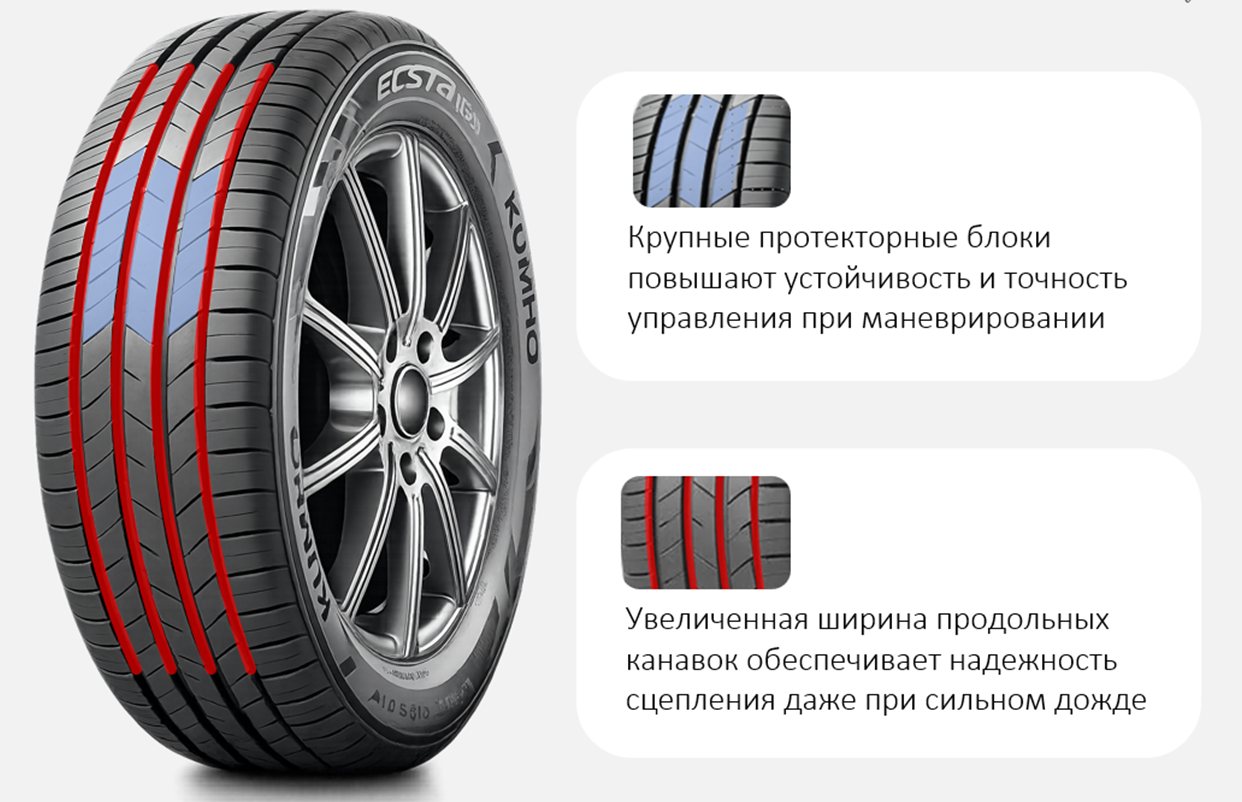 Kumho Ecsta HS52 — это туринговые летние шины с уникальным балансом высокого качества и доступной для таких характеристик стоимостью.
